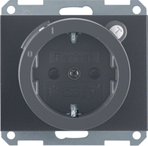Hager Berker K.1/K.5 wandcontactdoos (wcd schakelmat.), antraciet, uitvoering contactdoos CEE 7/3 (type, 2 actieve contacten (rond), 1 eenheid, 1 fasen, aansluitwijze schroefklem, met verhoogde aanraakbeveiliging, RAL-nummer 7021, geïsoleerde montage, foutstroombeveiliging