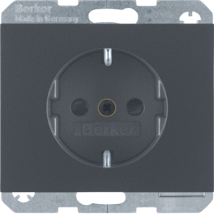 Hager Berker K.1/K.5 wandcontactdoos (wcd schakelmat.), antraciet, uitvoering contactdoos CEE 7/3 (type, 2 actieve contacten (rond), 1 eenheid, 1 fasen, aansluitwijze schroefklem, met verhoogde aanraakbeveiliging, RAL-nummer 7021, geïsoleerde montage