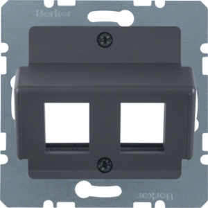 Hager Berker inzetplaat schakelmateriaal, overig, antraciet, gebruik modular-Jack, samenstelling centraalplaat voor tussen, inbouw (stucwerk), uitvoering oppervlakte mat, draagring, 2 modules (bij modulair sys, beschermingsgraad (IP) IP20, geschikt voor aantal connectoren 2, halogeenvrij,
