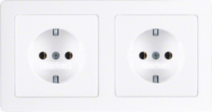 Hager Berker Q.1/Q.3 wandcontactdoos (wcd schakelmat.), wit, uitvoering contactdoos CEE 7/3 (type, 2 actieve contacten (rond), 2 eenheden, 2 modules (bij modulair sys, 1 fasen, aansluitwijze steekklem, RAL-nummer 9010, geïsoleerde montage