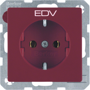 Hager Berker Q.1 wandcontactdoos (wcd schakelmat.), rood, uitvoering contactdoos CEE 7/3 (type, 2 actieve contacten (rond), 1 eenheid, 1 fasen, opdruk/indicatie computervoeding, aansluitwijze steekklem, RAL-nummer 3003, geïsoleerde montage
