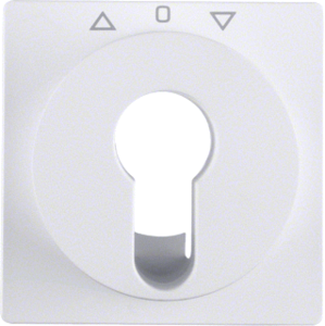 Hager Berker Q.1/Q.3 bed.element / centr.pl. schakelmat., kunststof, wit, (bxhxd) 58.4x58.4x28mm, uitvoering sleutel, gebruik jaloezie, uitvoering oppervlakte mat, opdruk/indicatie diverse symbolen, beschermingsgraad (IP) IP20, RAL-nummer 9010, halogeenvrij, kwaliteit thermoplast,
