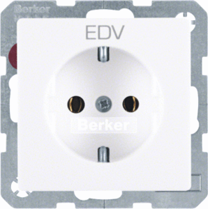 Hager Berker Q.1 wandcontactdoos (wcd schakelmat.), wit, uitvoering contactdoos CEE 7/3 (type, 2 actieve contacten (rond), 1 eenheid, 1 fasen, opdruk/indicatie computervoeding, aansluitwijze steekklem, RAL-nummer 9010, geïsoleerde montage