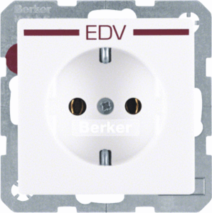 Hager Berker Q.1 wandcontactdoos (wcd schakelmat.), wit, uitvoering contactdoos CEE 7/3 (type, 2 actieve contacten (rond), 1 eenheid, 1 fasen, opdruk/indicatie computervoeding, aansluitwijze steekklem, RAL-nummer 9010, geïsoleerde montage