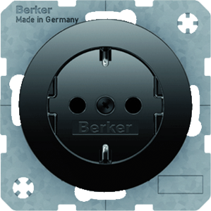 Hager Berker R.1/R.3 wandcontactdoos (wcd schakelmat.), zwart, uitvoering contactdoos CEE 7/3 (type, 2 actieve contacten (rond), 1 eenheid, 1 fasen, aansluitwijze steekklem, RAL-nummer 9005, geïsoleerde montage