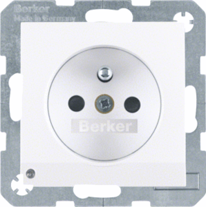 Hager Berker S.1/B.3/B.7 wandcontactdoos (wcd schakelmat.), wit, uitvoering aardingspen, 2 actieve contacten (rond), 1 eenheid, 1 fasen, aansluitwijze schroefklem, met verhoogde aanraakbeveiliging, RAL-nummer 9010, geïsoleerde montage, met oriëntatieverlichting