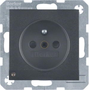 Hager Berker S.1/B.3/B.7 wandcontactdoos (wcd schakelmat.), antraciet, uitvoering aardingspen, 2 actieve contacten (rond), 1 eenheid, 1 fasen, aansluitwijze schroefklem, met verhoogde aanraakbeveiliging, RAL-nummer 7021, geïsoleerde montage, met oriëntatieverlichting