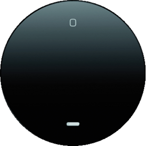 Hager Berker R.1/R.3 bed.element / centr.pl. schakelmat., kunststof, zwart, (bxhxd) 57.8x57.8x20mm, uitvoering enkele wip, gebruik schakelaar/drukker, uitvoering oppervlakte glanzend, opdruk/indicatie symbool"0", controlevenster/verlicht, beschermingsgraad (IP) IP44, RAL-nummer 9005,