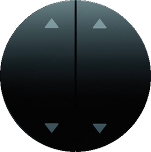 Hager Berker R.1/R.3 bed.element / centr.pl. schakelmat., kunststof, zwart, (bxhxd) 57.8x57.8x20mm, uitvoering 2-delige wip, gebruik jaloezie, uitvoering oppervlakte glanzend, opdruk/indicatie symbool"pijlen", beschermingsgraad (IP) IP20, RAL-nummer 9005, geschikt voor bussysteem-toetsaansl,