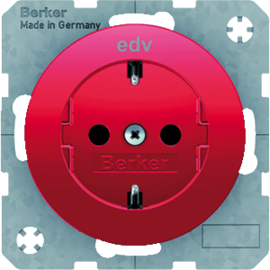 Hager Berker R.1/R.3 wandcontactdoos (wcd schakelmat.), rood, uitvoering contactdoos CEE 7/3 (type, 2 actieve contacten (rond), 1 eenheid, 1 fasen, opdruk/indicatie computervoeding, aansluitwijze steekklem, RAL-nummer 3003, geïsoleerde montage