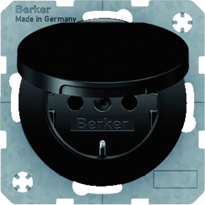 Hager Berker R.1/R.3 wandcontactdoos (wcd schakelmat.), zwart, uitvoering contactdoos CEE 7/3 (type, 2 actieve contacten (rond), 1 eenheid, 1 fasen, aansluitwijze steekklem, met klapdeksel, met verhoogde aanraakbeveiliging, RAL-nummer 9005, geïsoleerde montage