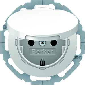 Hager Berker R.1/R.3 wandcontactdoos (wcd schakelmat.), wit, uitvoering contactdoos CEE 7/3 (type, 2 actieve contacten (rond), 1 eenheid, 1 fasen, aansluitwijze steekklem, met klapdeksel, met verhoogde aanraakbeveiliging, RAL-nummer 9010, geïsoleerde montage