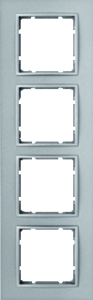 Hager Berker B.7 afdekraam schakelmateriaal, kunststof, aluminium, (bxhxd) 303x95x9.6mm, uitvoering oppervlakte mat, montagerichting horizontaal en verticaal, geschikt voor wandgoot, 4 eenheden, beschermingsgraad (IP) IP20, 4 eenheden horizontaal, slagvastheid IK07, RAL-nummer 9006,