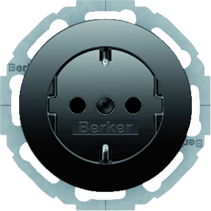 Hager Berker R.classic wandcontactdoos (wcd schakelmat.), zwart, uitvoering contactdoos CEE 7/3 (type, 2 actieve contacten (rond), 1 eenheid, 1 fasen, aansluitwijze steekklem, RAL-nummer 9005, geïsoleerde montage