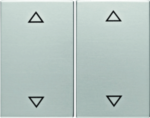 Hager Berker K.1/K.5 bed.element / centr.pl. schakelmat., metaal, aluminium, (bxhxd) 71x55x25mm, uitvoering 2-delige wip, gebruik jaloezie, uitvoering oppervlakte mat, opdruk/indicatie symbool"pijlen", beschermingsgraad (IP) IP20, RAL-nummer 9006, geschikt voor bussysteem-toetsaansl, halogeenvrij,