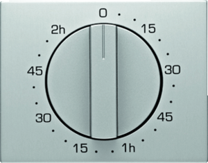 Hager Berker K.1/K.5 bed.element / centr.pl. schakelmat., metaal, aluminium, (bxhxd) 70.5x56.1x22mm, uitvoering draaiknop, gebruik tijdschakelaar, uitvoering oppervlakte mat, opdruk/indicatie diverse symbolen, beschermingsgraad (IP) IP20, RAL-nummer 9006, halogeenvrij, kwaliteit aluminium,