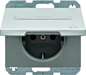 Hager Berker K.1/K.5 wandcontactdoos (wcd schakelmat.), aluminium, uitvoering contactdoos CEE 7/3 (type, 2 actieve contacten (rond), 1 eenheid, 1 fasen, aansluitwijze steekklem, met klapdeksel, met verhoogde aanraakbeveiliging, tekstveld/beschrijvingsvlak, RAL-nummer 9006, geïsoleerde montage