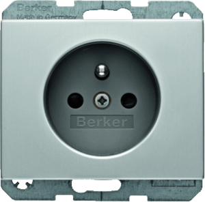 Hager Berker K.1/K.5 wandcontactdoos (wcd schakelmat.), aluminium, uitvoering aardingspen, 2 actieve contacten (rond), 1 eenheid, 1 fasen, aansluitwijze schroefklem, met verhoogde aanraakbeveiliging, RAL-nummer 9006, metallic, geïsoleerde montage