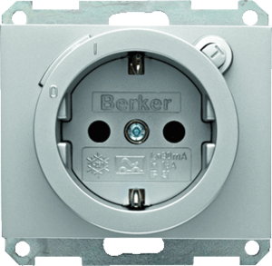 Hager Berker K.1/K.5 wandcontactdoos (wcd schakelmat.), aluminium, uitvoering contactdoos CEE 7/3 (type, 2 actieve contacten (rond), 1 eenheid, 1 fasen, aansluitwijze schroefklem, met verhoogde aanraakbeveiliging, RAL-nummer 9006, geïsoleerde montage, foutstroombeveiliging