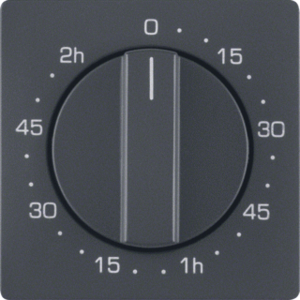 Hager Berker Q.1/Q.3 bed.element / centr.pl. schakelmat., kunststof, antraciet, (bxhxd) 58.8x58.8x24mm, uitvoering draaiknop, gebruik tijdschakelaar, uitvoering oppervlakte mat, opdruk/indicatie diverse symbolen, beschermingsgraad (IP) IP20, RAL-nummer 7021, halogeenvrij, kwaliteit duroplast,
