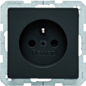 Hager Berker Q.1/Q.3 wandcontactdoos (wcd schakelmat.), antraciet, uitvoering aardingspen, 2 actieve contacten (rond), 1 eenheid, 1 fasen, aansluitwijze schroefklem, met verhoogde aanraakbeveiliging, RAL-nummer 7021, geïsoleerde montage