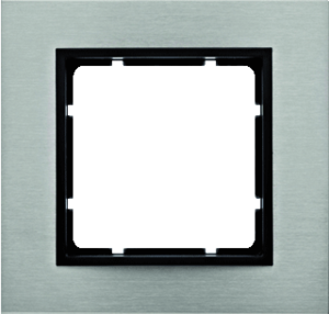 Hager Berker B.7 afdekraam schakelmateriaal, metaal, roestvaststaal (RVS), (bxhxd) 95x90x9.6mm, uitvoering oppervlakte mat, montagerichting horizontaal en verticaal, geschikt voor wandgoot, 1 eenheid, beschermingsgraad (IP) IP20, 1 eenheden horizontaal, slagvastheid IK07, RAL-nummer 9022,