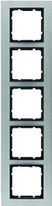 Hager Berker B.7 afdekraam schakelmateriaal, metaal, roestvaststaal (RVS), (bxhxd) 95x374x9.6mm, uitvoering oppervlakte mat, montagerichting verticaal, geschikt voor wandgoot, 5 eenheden, beschermingsgraad (IP) IP20, 1 eenheden horizontaal, slagvastheid IK07, RAL-nummer 9022,