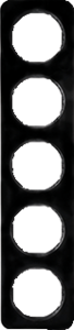 Hager Berker R.1 afdekraam schakelmateriaal, kunststof, zwart, (bxhxd) 80.7x364.7x9.9mm, uitvoering oppervlakte glanzend, montagerichting horizontaal en verticaal, geschikt voor wandgoot, 5 eenheden, beschermingsgraad (IP) IP20, 5 eenheden horizontaal, slagvastheid IK05, RAL-nummer 9005,