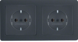 Hager Berker Q.3 wandcontactdoos (wcd schakelmat.), antraciet, uitvoering contactdoos CEE 7/3 (type, 2 actieve contacten (rond), 2 eenheden, 1 fasen, aansluitwijze schroefklem, RAL-nummer 7021, geïsoleerde montage