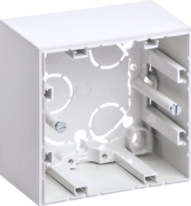 Hager Berker S.1 opbouwbak inbouwschakelmateriaal, kunststof, wit, samenstelling bodemplaat behuizing, montagerichting horizontaal en verticaal, beschermingsgraad (IP) IP20, 1 eenheid, met kabelinvoer, uitvoering oppervlakte mat, met kanaalinvoering, schakelmateriaaldiepte 46mm,