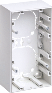 Hager Berker S.1 opbouwbak inbouwschakelmateriaal, kunststof, wit, samenstelling bodemplaat behuizing, montagerichting horizontaal en verticaal, beschermingsgraad (IP) IP20, 2 eenheden, met kabelinvoer, uitvoering oppervlakte mat, met kanaalinvoering, schakelmateriaaldiepte 46mm,