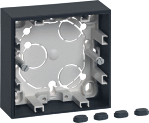 Hager Berker S.1 opbouwbak inbouwschakelmateriaal, kunststof, antraciet, samenstelling bodemplaat behuizing, montagerichting horizontaal en verticaal, beschermingsgraad (IP) IP20, 1 eenheid, met kabelinvoer, uitvoering oppervlakte mat, met kanaalinvoering, schakelmateriaaldiepte 32mm,