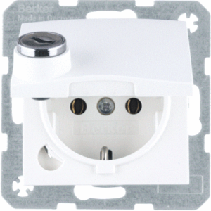 Hager Berker S.1/B.3/B.7 wandcontactdoos (wcd schakelmat.), wit, uitvoering contactdoos CEE 7/3 (type, 2 actieve contacten (rond), 1 eenheid, 2 fasen, aansluitwijze steekklem, met klapdeksel, RAL-nummer 9010, afsluitbaar, geïsoleerde montage