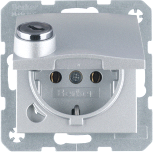 Hager Berker S.1/B.3/B.7 wandcontactdoos (wcd schakelmat.), aluminium, uitvoering contactdoos CEE 7/3 (type, 2 actieve contacten (rond), 1 eenheid, 2 fasen, aansluitwijze steekklem, met klapdeksel, RAL-nummer 9006, afsluitbaar, geïsoleerde montage