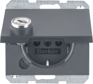 Hager Berker K.1 wandcontactdoos (wcd schakelmat.), antraciet, uitvoering contactdoos CEE 7/3 (type, 2 actieve contacten (rond), 1 eenheid, 2 fasen, aansluitwijze steekklem, met klapdeksel, RAL-nummer 7021, afsluitbaar, geïsoleerde montage