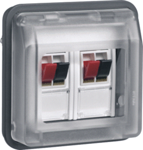 Hager Berker W.1 inzetplaat schakelmateriaal, kunststof, grijs, gebruik luidsprekeraansluiting, samenstelling basiselement met volle af, opbouw, uitvoering oppervlakte mat, draagring, beschermingsgraad (IP) IP55, halogeenvrij, kwaliteit thermoplast, met klapdeksel, met stofbescherming,