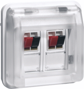 Hager Berker W.1 inzetplaat schakelmateriaal, kunststof, wit, gebruik luidsprekeraansluiting, samenstelling basiselement met volle af, opbouw, uitvoering oppervlakte mat, draagring, beschermingsgraad (IP) IP55, halogeenvrij, kwaliteit thermoplast, met klapdeksel, met stofbescherming,