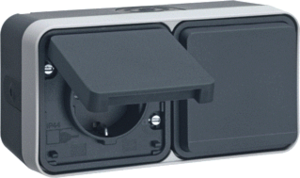 Hager Berker W.1 wandcontactdoos (wcd schakelmat.), grijs, uitvoering contactdoos CEE 7/3 (type, 2 actieve contacten (rond), 2 eenheden, 1 fasen, aansluitwijze schroefklem, met klapdeksel, RAL-nummer 7011, geïsoleerde montage
