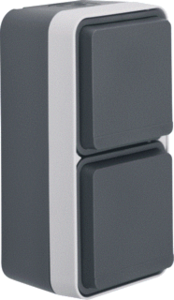 Hager Berker W.1 wandcontactdoos (wcd schakelmat.), grijs, uitvoering contactdoos CEE 7/3 (type, 2 actieve contacten (rond), 2 eenheden, 1 fasen, aansluitwijze schroefklem, met klapdeksel, met verhoogde aanraakbeveiliging, RAL-nummer 7011, geïsoleerde montage