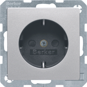 Hager Berker Q.1/Q.3 wandcontactdoos (wcd schakelmat.), aluminium, uitvoering contactdoos CEE 7/3 (type, 2 actieve contacten (rond), 1 eenheid, 1 fasen, aansluitwijze schroefklem, met verhoogde aanraakbeveiliging, RAL-nummer 9006, metallic, geïsoleerde montage