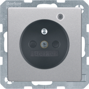 Hager Berker Q.1/Q.3 wandcontactdoos (wcd schakelmat.), aluminium, uitvoering aardingspen, 2 actieve contacten (rond), 1 eenheid, 1 fasen, aansluitwijze schroefklem, met verhoogde aanraakbeveiliging, RAL-nummer 9006, geïsoleerde montage, met functieverlichting