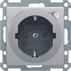 Hager Berker Q.1/Q.3 wandcontactdoos (wcd schakelmat.), aluminium, uitvoering contactdoos CEE 7/3 (type, 2 actieve contacten (rond), 1 eenheid, 1 fasen, aansluitwijze schroefklem, met verhoogde aanraakbeveiliging, RAL-nummer 9006, geïsoleerde montage, foutstroombeveiliging