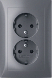 Hager Berker S.1 wandcontactdoos (wcd schakelmat.), aluminium, uitvoering contactdoos CEE 7/3 (type, 1 actieve contacten (rond), 2 eenheden, 2 modules (bij modulair sys, 1 fasen, aansluitwijze schroefklem, RAL-nummer 9006, metallic, geïsoleerde montage