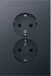 Hager Berker Q.3 wandcontactdoos (wcd schakelmat.), antraciet, uitvoering contactdoos CEE 7/3 (type, 1 actieve contacten (rond), 2 eenheden, 2 modules (bij modulair sys, 1 fasen, aansluitwijze schroefklem, RAL-nummer 7021, geïsoleerde montage