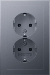 Hager Berker Q.3 wandcontactdoos (wcd schakelmat.), aluminium, uitvoering contactdoos CEE 7/3 (type, 1 actieve contacten (rond), 2 eenheden, 2 modules (bij modulair sys, 1 fasen, aansluitwijze schroefklem, RAL-nummer 9006, geïsoleerde montage