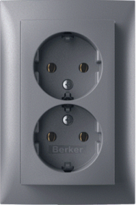 Hager Berker S.1 wandcontactdoos (wcd schakelmat.), aluminium, uitvoering contactdoos CEE 7/3 (type, 1 actieve contacten (rond), 2 eenheden, 2 modules (bij modulair sys, 1 fasen, aansluitwijze schroefklem, RAL-nummer 9006, metallic, geïsoleerde montage