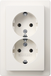 Hager Berker Q.1 wandcontactdoos (wcd schakelmat.), wit, uitvoering contactdoos CEE 7/3 (type, 1 actieve contacten (rond), 2 eenheden, 2 modules (bij modulair sys, 1 fasen, aansluitwijze schroefklem, RAL-nummer 9010, geïsoleerde montage