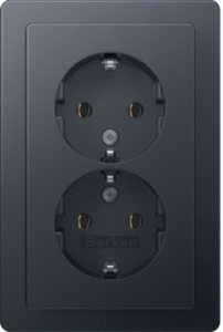 Hager Berker Q.1 wandcontactdoos (wcd schakelmat.), antraciet, uitvoering contactdoos CEE 7/3 (type, 1 actieve contacten (rond), 2 eenheden, 2 modules (bij modulair sys, 1 fasen, aansluitwijze schroefklem, RAL-nummer 7016, geïsoleerde montage