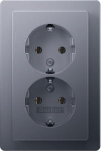 Hager Berker Q.1 wandcontactdoos (wcd schakelmat.), aluminium, uitvoering contactdoos CEE 7/3 (type, 1 actieve contacten (rond), 2 eenheden, 2 modules (bij modulair sys, 1 fasen, aansluitwijze schroefklem, RAL-nummer 9006, geïsoleerde montage