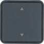 Hager Berker W.1 bed.element / centr.pl. schakelmat., kunststof, grijs, breedte 71mm, uitvoering enkele wip, gebruik schakelaar/drukker, uitvoering oppervlakte mat, opdruk/indicatie symbool"pijlen", beschermingsgraad (IP) IP55, RAL-nummer 7011, geschikt voor bussysteem-toetsaansl, halogeenvrij,
